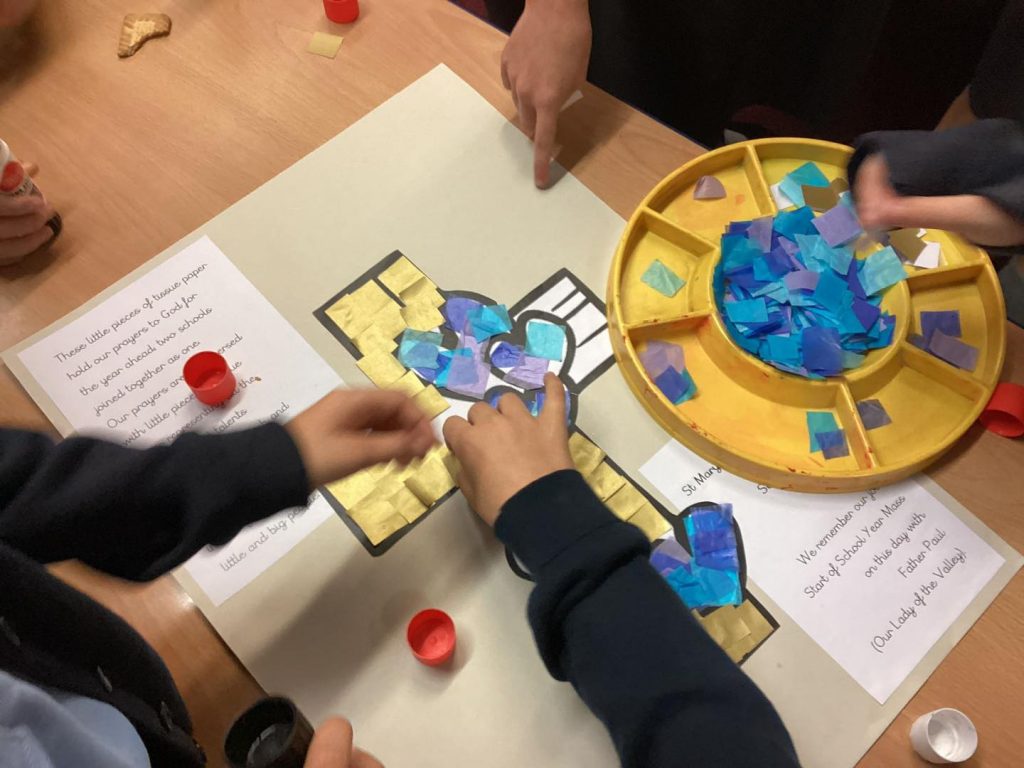 Crafts and prayers with our collaboration school, Thorneyholme.